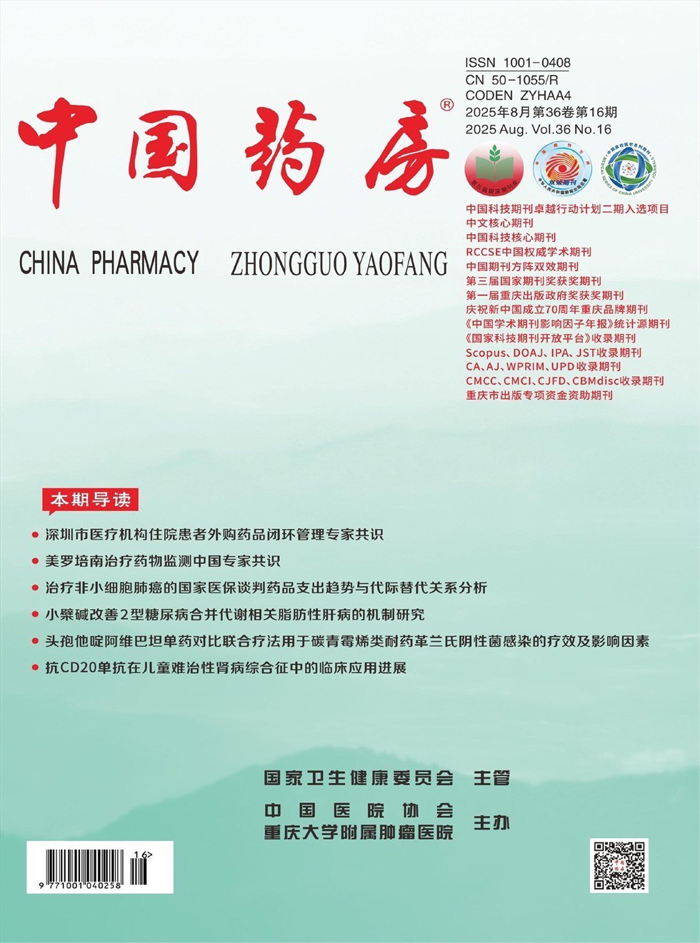 《中国药房》杂志是国家卫生健康委员会主管、中国医院协会、重庆大学附属肿瘤医院主办的国家级、国内外公开发行的药学学术类刊物。