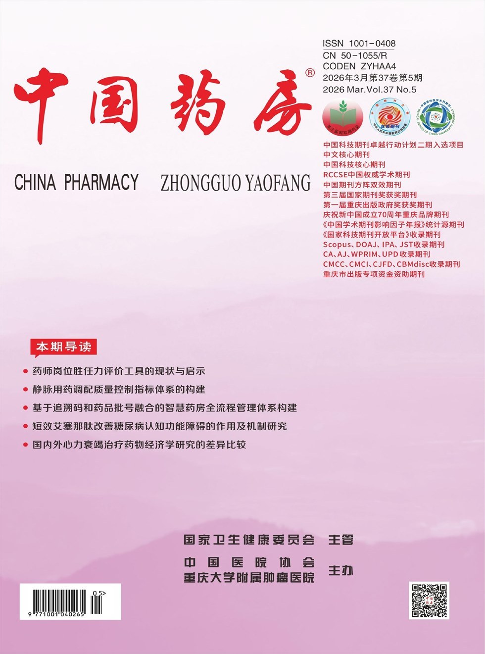 《中国药房》杂志是国家卫生健康委员会主管、中国医院协会、重庆大学附属肿瘤医院主办的国家级、国内外公开发行的药学学术类刊物。