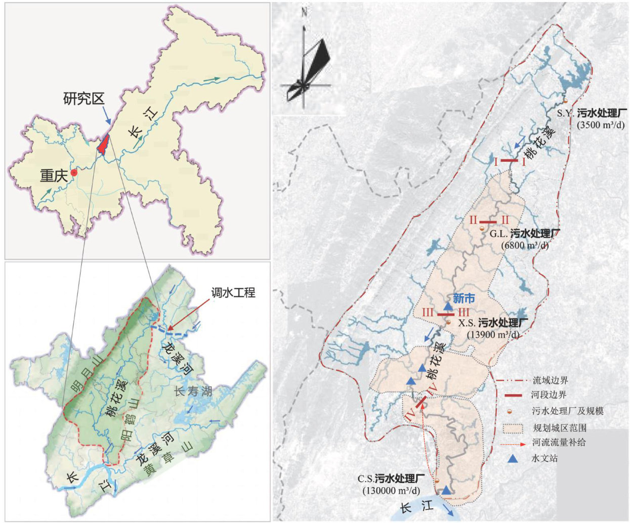 摘要:城市化河流面临着满足环境流量需求和维持河流生态健康以保障水环境可持续性的挑战。以重庆桃花溪为例,采用Tennant法确定环境流量,运用MIKE11水动力-水质模型模拟不同情景下再生水补给环境流量对河流流量和水质的影响,并与调水补给进行比较。结果表明:城市化对河流环境流量提出了更高要求,而河流枯水期流量的减少趋势给河流生态系统带来压力;再生水补给可使各断面不满足“极佳”“优良”环境流量的频次分别减少 44% 和 75% ,对缓解生态敏感期缺水程度和历时具有显著作用;再生水辅以调水补给可确保桃花溪满足各类环境流量要求,但补水对本底水质良好的河段存在污染风险;流量补给与水质改善效果取决于补给水的水量和水质,尤其是污水处理厂出水标准。研究成果可为决策部门制定城市河流可持续保障方案提供依据,研究方法也可为其他城市的河流管理实践提供参考。