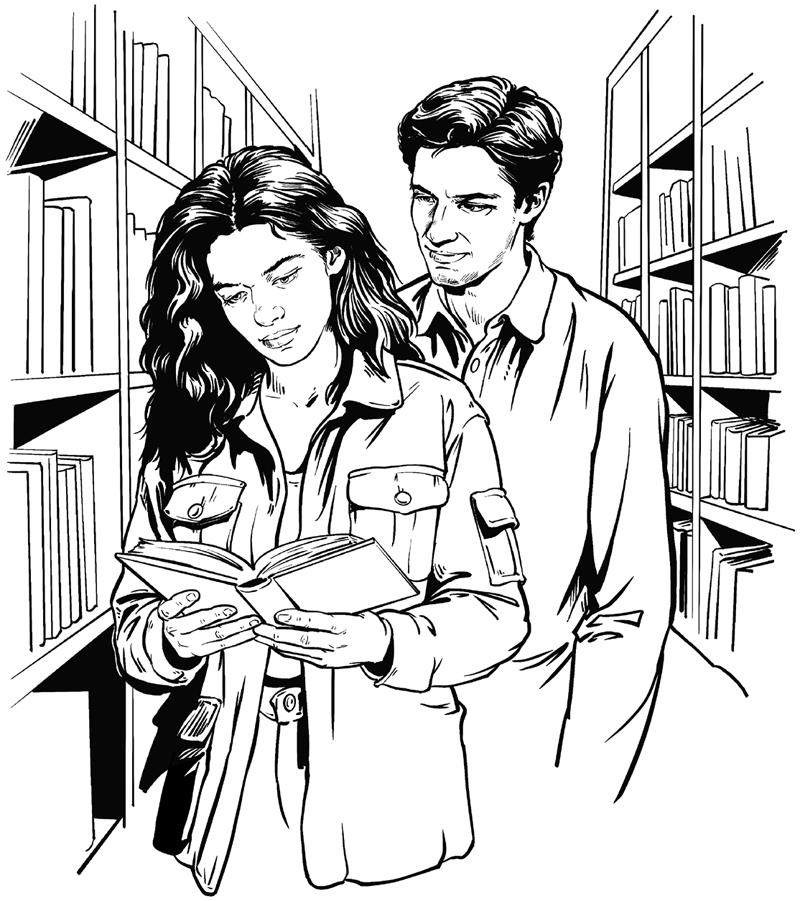 * 垃圾回收结束七分钟后,我与艾比的约会就要迟到了。 我从图书馆正面的、双开式弹簧门冲了进来,门在我身后砰的一声关上,那些发型完美、皮肤光洁、牙齿整齐的面孔从书本和电子屏幕前抬起头来。 图书馆的常客们认出了我,又把注意力放回到了他们的书本上。但有几个新人和流浪汉注视着我穿过参考书分区——那里排列着长桌和矮小的台灯——直到我的身影消失在更高的书架投下的阴影里。 诗歌和小说分区就在这儿,艾比在