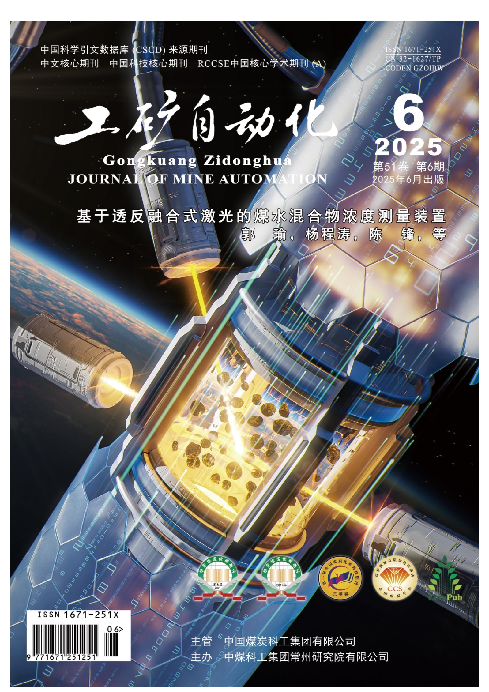 摘要:针对水力冲孔增透作业中煤水混合物浓度测量,围堰法、沉淀池法和计量斗法的效率和精度较低,音叉式传感器技术在精度和一致性方面难以满足要求,单一激光检测技术适用范围有限。针对上述问题,将激光透射法与激光反射法相结合,提出了一种基于透反融合式激光的煤水混合物浓度测量装置。在煤水混合物输送管道的一侧安装激光光源,并在同一侧安装反射光光电探测器,在输送管道另一侧安装透射光光电探测器。激光光源通过凸透镜射入煤水混合物中,透射光和反射光光电探测器将接收到的激光能量转换为相应的数字信号;数字信号经过叠加处理后,进行灰度化处理与特征区域选择,有利于减少计算复杂度、排除干扰,进而计算出对应的灰度值,并通过多项式回归建立灰度值与煤水混合物浓度的对应关系,从而实现煤水混合物浓度测量。应用结果表明,针对 2%~20% 煤水混合物浓度,该装置测量的最小误差为 0.043% ,最大误差为 0.343% ,平均误差为 0.126% 标准差为 0.116% ,满足水力冲孔增透作业对煤水混合物浓度检测精度的要求。