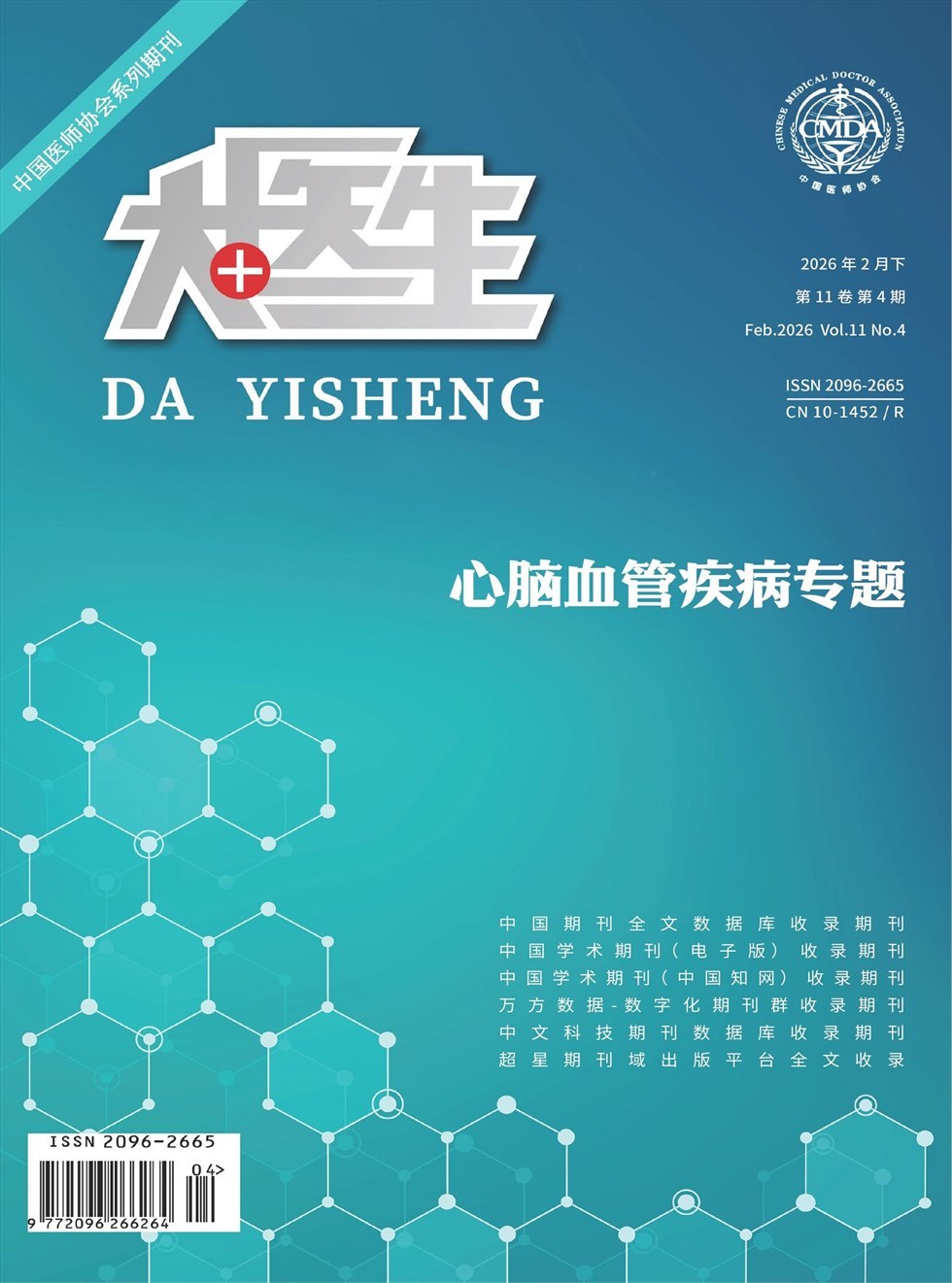 《大医生》杂志(半月刊)是经国家新闻出版广电总局批准,由中国机械工业联合会主管、北京卓众出版有限公司主办的国家级综合性医学学术期刊。本刊以习近平新时代中国特色社会主义思想为指导,紧密跟随世界医学科技发展的潮流,为推动中国医学科技进步和知识创新、促进基层医生医学学术交流和医学事业发展服务,提高基层医疗水平,繁荣中国医学科技出版事业为办刊宗旨。主要栏目有专家特稿、论著、临床研究、中医中药、药物与临床、预防医学、医学影像、病例报告、综述等。是中国医师协会系列期刊,被万方、维普、超星等数据库全文收录。