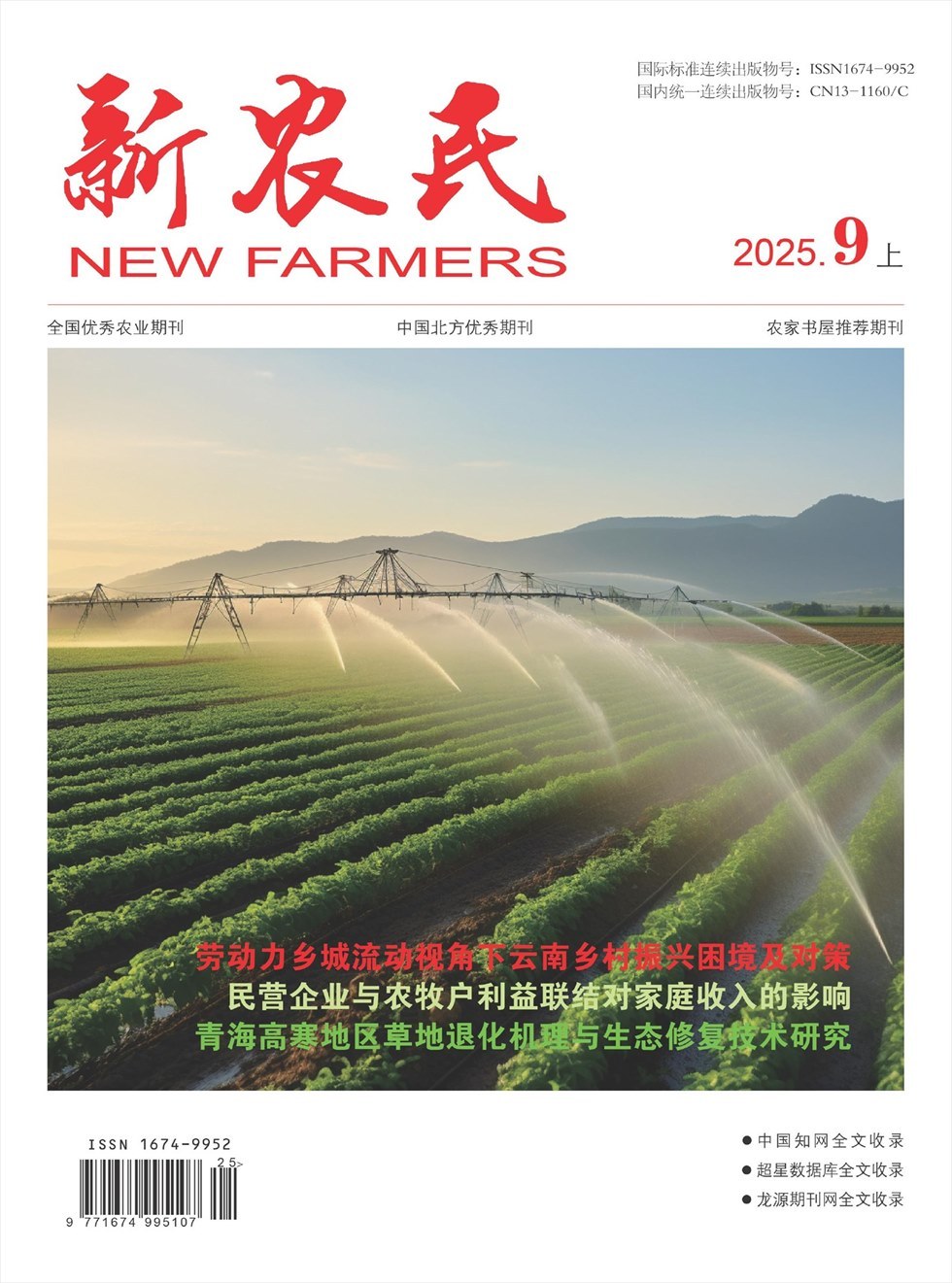 《新农民》杂志系全国百佳期刊推荐刊物;全国优秀农业期刊;新农村建设推荐期刊;农家书屋推荐期刊。中国核心期刊(遴选)数据库、中文科技期刊数据库等期刊网收录期刊。欢迎全国农、林、牧、渔业以及相关单位赐稿!