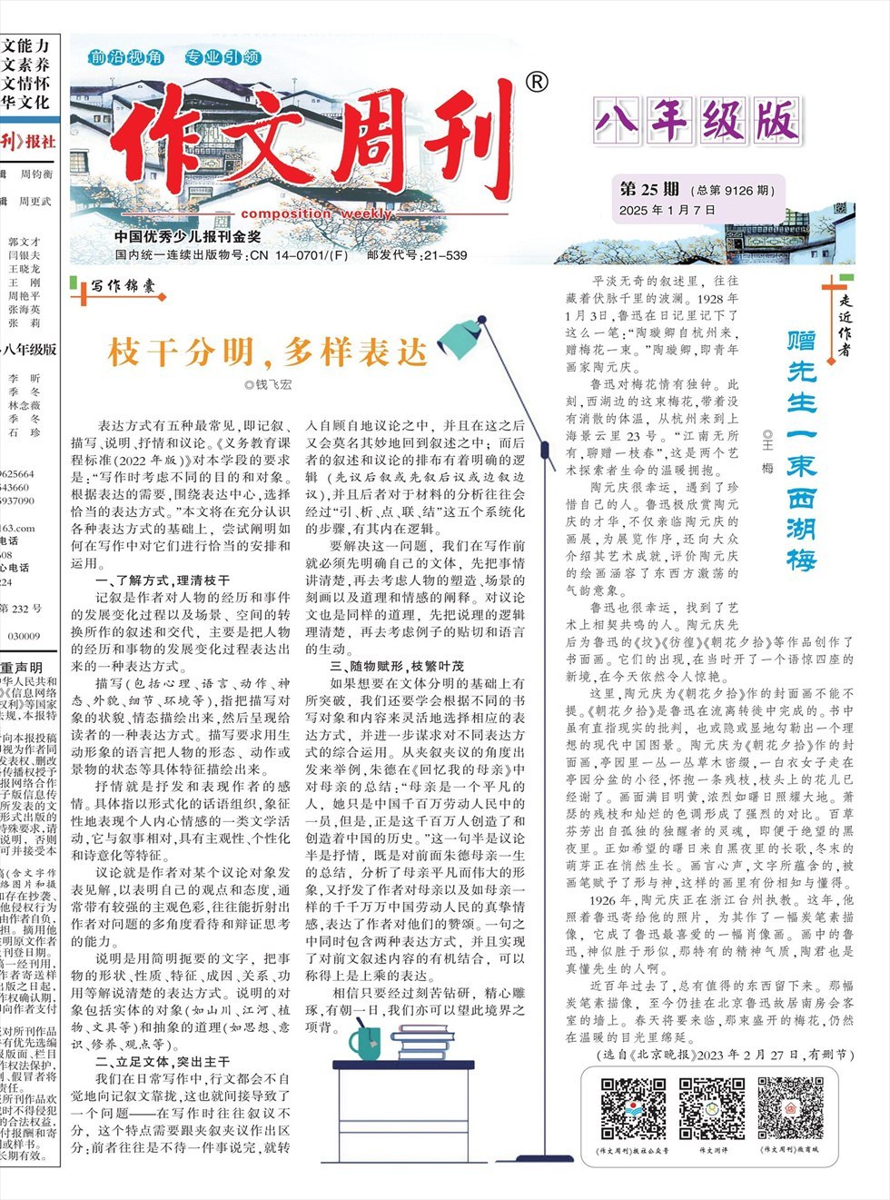 表达方式有五种最常见,即记叙、描写、说明、抒情和议论。《义务教育课程标准(2022年版)》对本学段的要求是:“写作时考虑不同的目的和对象。根据表达的需要,围绕表达中心,选择恰当的表达方式。”本文将在充分认识各种表达方式的基础上,尝试阐明如何在写作中对它们进行恰当的安排和运用。 一、了解方式,理清枝干 记叙是作者对人物的经历和事件的发展变化过程以及场景、空间的转换所作的叙述和交代,主要是把人物的
