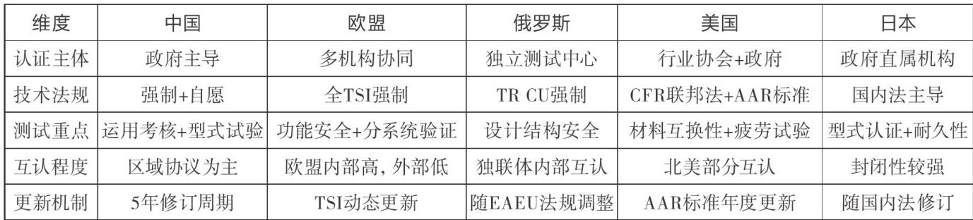 摘要:随着“一带一路”倡议的推进与全球铁路产业竞争格局的重构,跨国铁路机车标准化认证体系成为影响技术输出与市场准入的核心要素。本文选取中国、欧盟、俄罗斯、美国及日本五大经济体,围绕认证机构设置、技术法规框架、测试要求、互认协议及更新机制五大维度,对比分析其铁路机车标准化认证体系的异同。结合中欧班列认证挑战和北美机车出口认证壁垒案例,揭示体系碎片化对国际贸易的阻碍,并提出构建国际互认框架的建议。