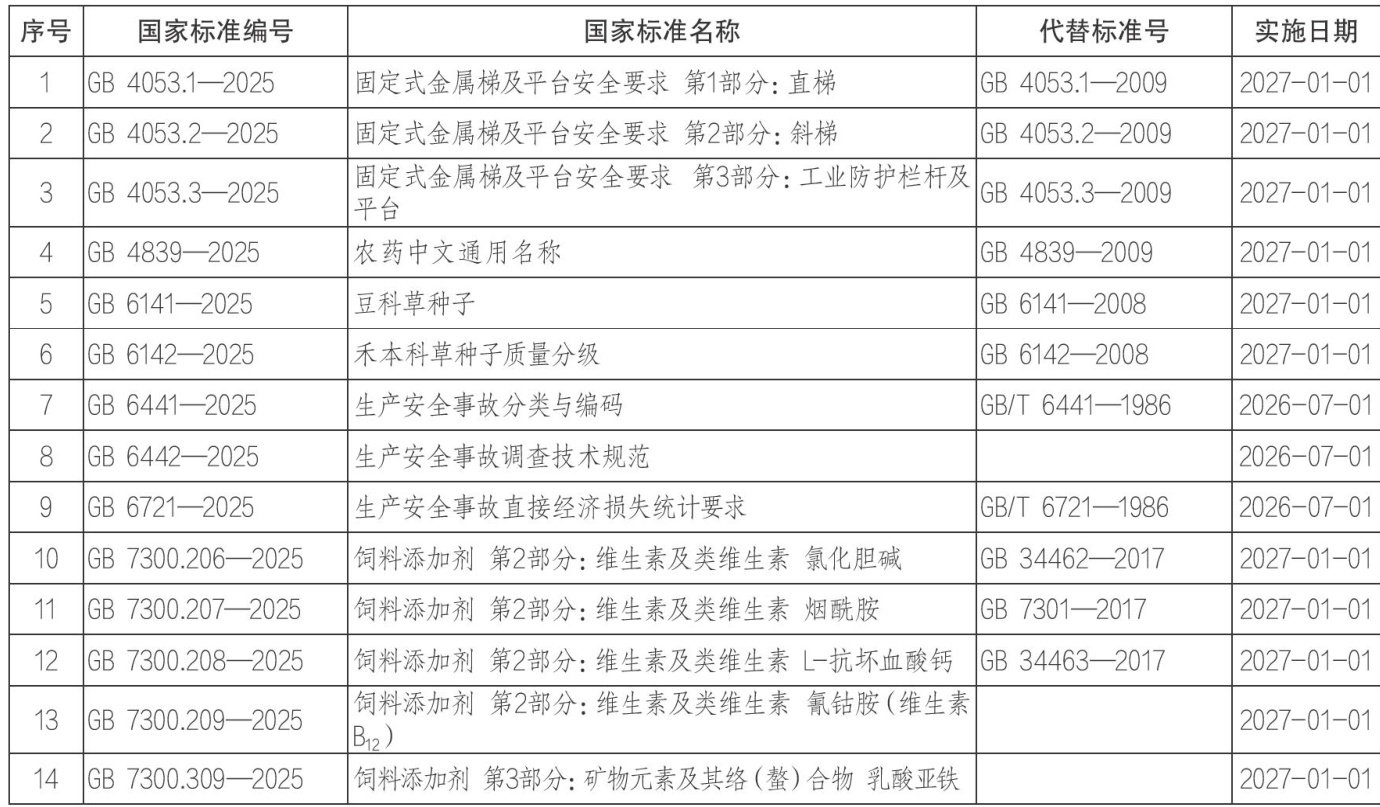 关于批准发布《固定式金属梯及平台安全要求第1部分:直梯》等46项强制性国家标准和2项强制性国家标准修改单的公告 批准《固定式金属梯及平台安全要求第1部分:直梯》等46项强制性国家标准和2项强制性国家标准修改单,现予以公告。 一、国家标准 二、国家标准修改单 备注:城镇污水处理厂污染物排放标准《第2号修改单》由生态环境部、发布。