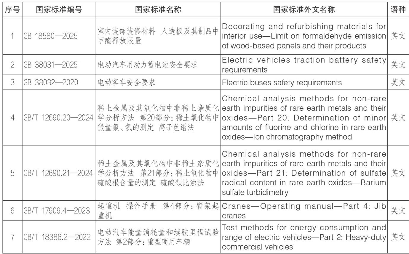 关于批准发布《室内装饰装修材料人造板及其制品中甲醛释放限量》等80项国家标准外文版的公告 批准《室内装饰装修材料人造板及其制品中甲醛释放限量》等80项国家标准外文版(附后),现予以公告。 2026-01-06