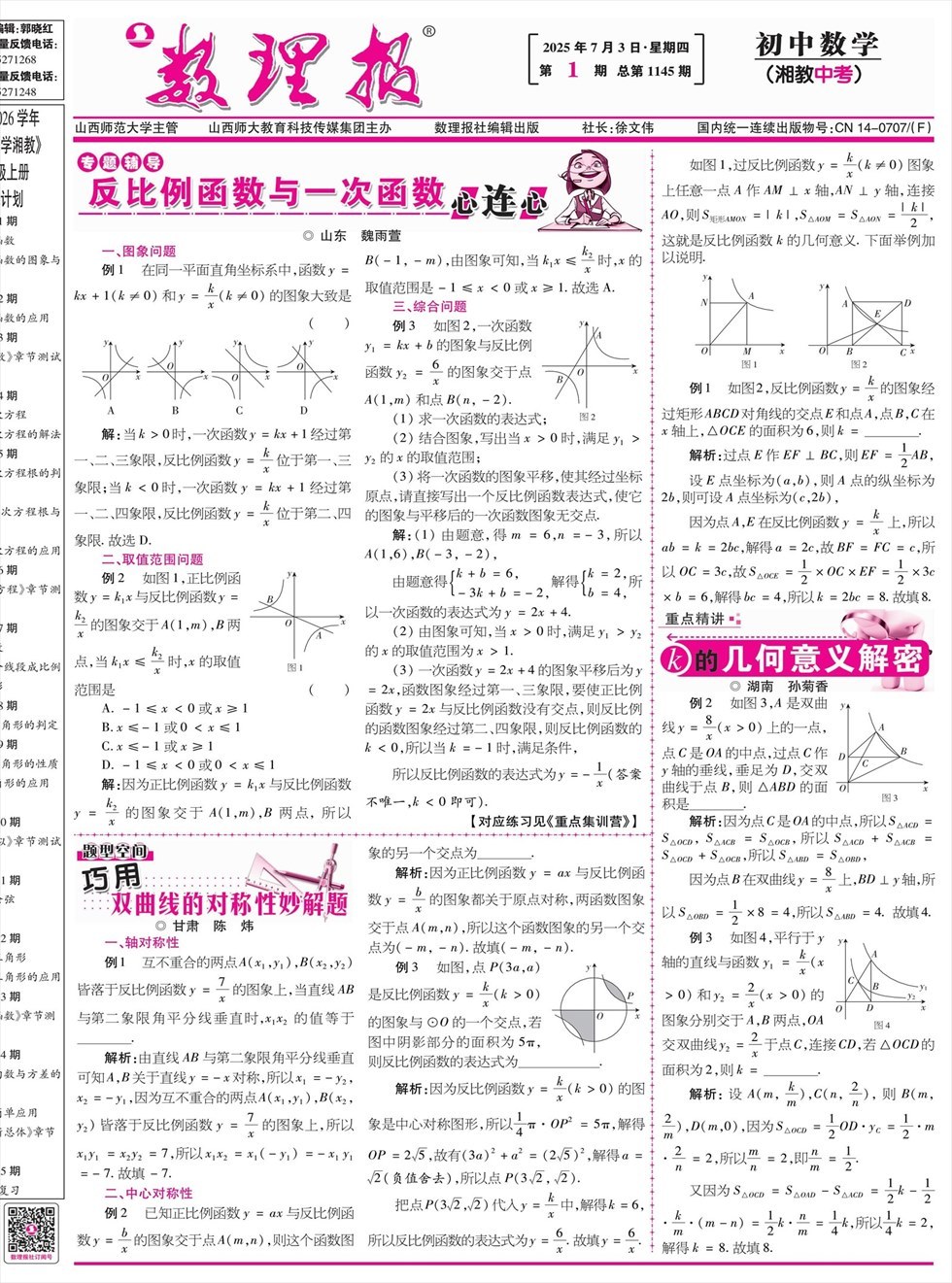 《数理报》是由山西省教育厅主管,山西师范大学主办,面向全国发行的中小学生理科教学辅导类报纸