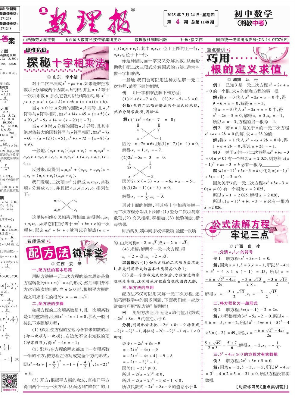 数理报·中考数学湘教版