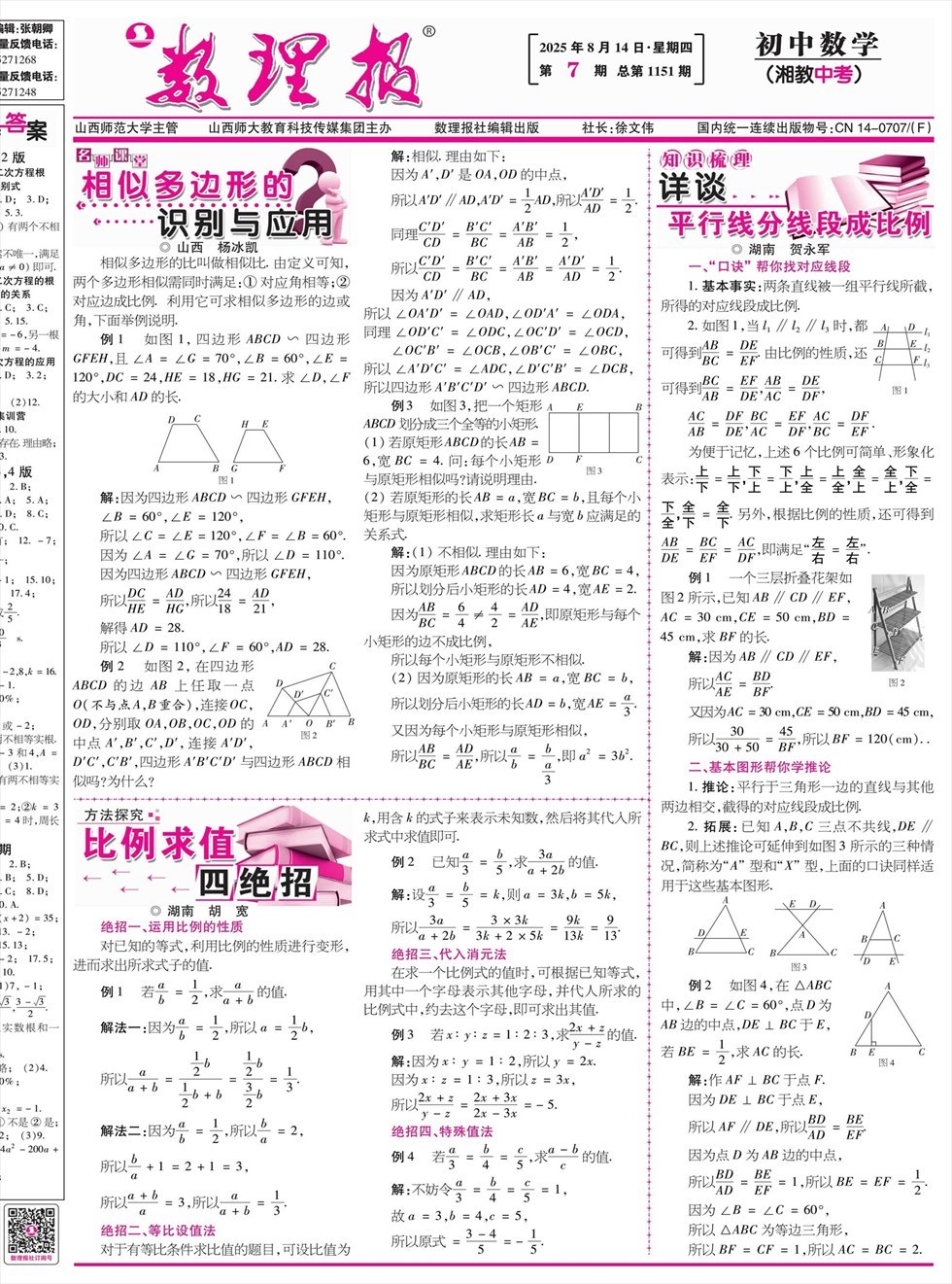 数理报·中考数学湘教版