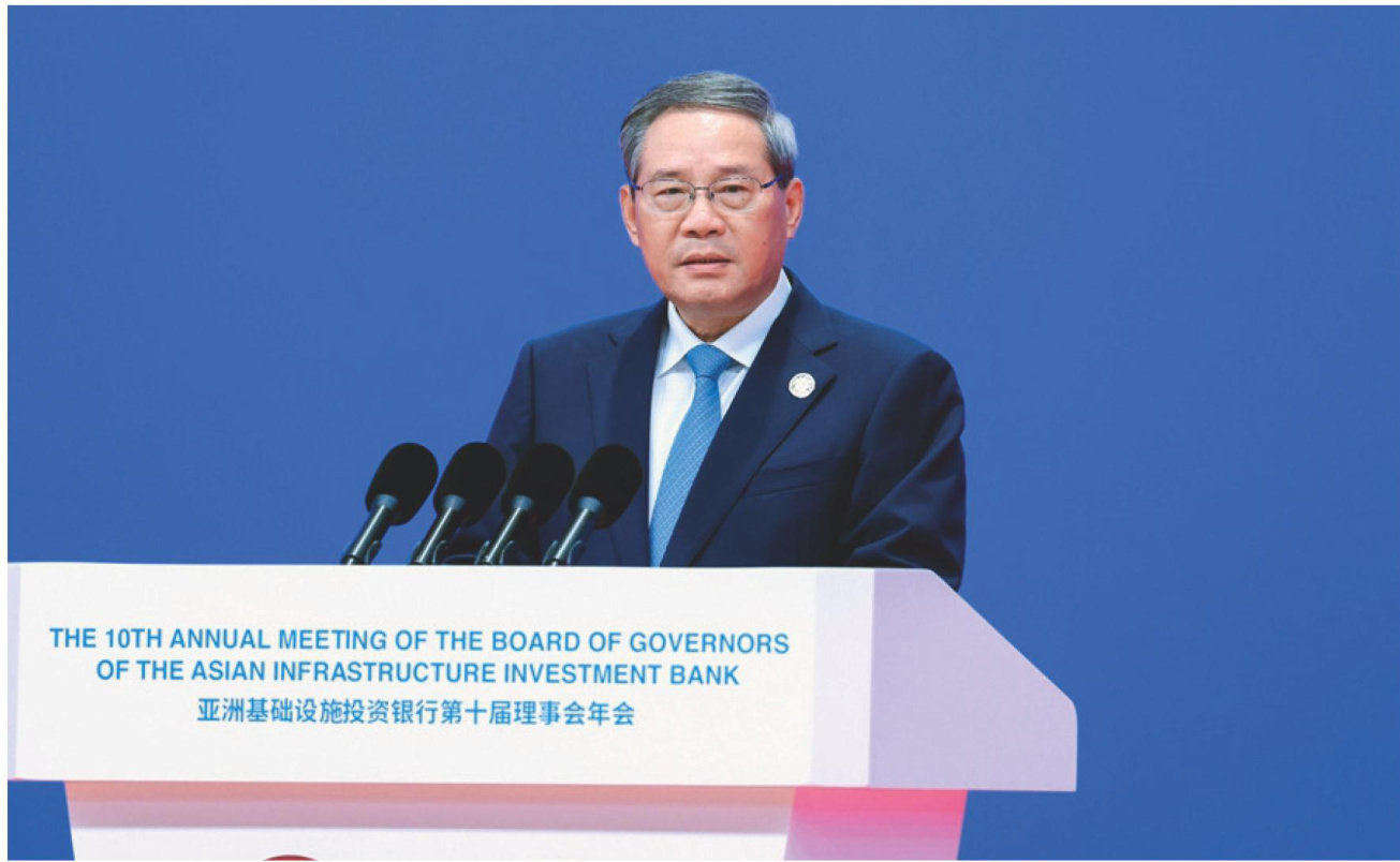 来源:新华社 6月26日上午,国务院总理李强在北京出席亚洲基础设施投资银行第十届理事会年会开幕式并致辞。 “氢电拖1”轮靠泊在山东港口青岛港码头(无人机照片,6月26日摄)。6月26日,国内首艘氢电拖轮“氢电拖1”轮在山东港口青岛港入列。该拖轮搭载“氢燃料电池 + 液冷锂电池”混动系统,可实现零碳排放。据介绍,与传统燃油拖轮相比,“氢电拖1”轮在噪音控制、设备寿命、能源利用效率等方面优