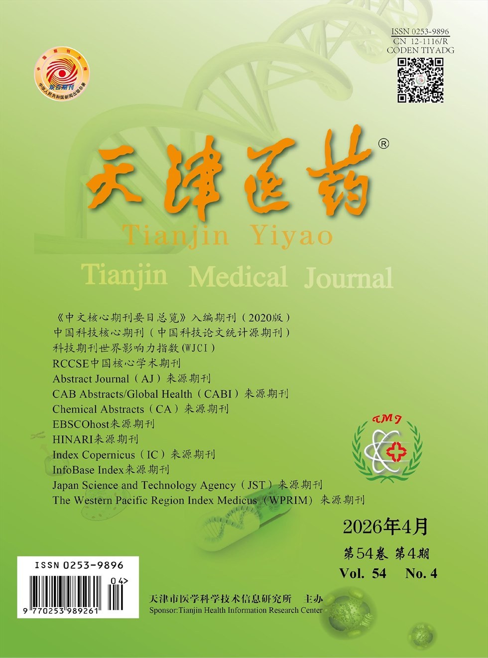 《天津医药》创刊于1959年,是天津市卫生和计划生育委员会主管,天津市医学科学技术信息研究所主办,集天津医科大学总医院、天津市胸科医院等20余家富有实力的临床、教学、科研单位联合协办,是国内外公开发行的有较高知名度的综合性医学期刊。