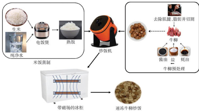 摘要:目的:近年来,速冻中式菜肴满足了消费者对方便、快捷、安全食品日益增长的需求,成为食品市场新的增长点,市场规模不断扩大。文章通过探究不同因素对速冻牛柳炒饭品质的影响,优化菜肴的工艺配方,以期提高速冻牛柳炒饭的品质,推动预制菜肴标准化、工业化生产进程。方法:主要利用单因素试验确定响应面的中心点,进一步利用Box-Behnken响应面优化建立速冻牛柳炒饭品质(感官评分、质构特性)与3个因素(米水比、蒸制时间、烹饪时间)之间的回归方程。结果:各因素对速冻牛柳炒饭综合评分的影响大小为米水比 > 烹饪时间 > 蒸制时间,最佳工艺条件为米水比 1:1.25 、蒸制时间 18.20min 、烹饪时间 5.90min ,此条件下综合评分为8.52分,与预测值8.75分接近。结论:该试验建立的响应面模型能够较好地优化速冻牛柳炒饭菜肴的制作工艺。该研究对速冻牛柳炒饭预制菜肴的标准化、工业化发展具有指导意义。