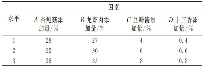 摘要:为了研发一种杏鲍菇龙虾肉酱并确定其最佳工艺配方,以杏鲍菇和小龙虾为主要原料,以感官评分为评价指标,通过单因素实验和正交实验探讨了杏鲍菇、龙虾肉、豆瓣酱和十三香的添加量对杏鲍菇龙虾肉酱品质的影响。结果表明,杏鲍菇龙虾肉酱的最佳工艺配方为杏鲍菇添加量 28% 、龙虾肉添加量30%、豆瓣酱添加量6%、十三香添加量 0.6% 。在此工艺条件下制备的肉酱富有光泽,呈橘黄色,香气浓郁,口感爽滑细腻,且各项理化指标和微生物指标均符合国家标准。该研究为以水产品为原料的肉酱开发工艺奠定了基础,同时为杏鲍菇龙虾肉酱工业化生产提供了技术参考。