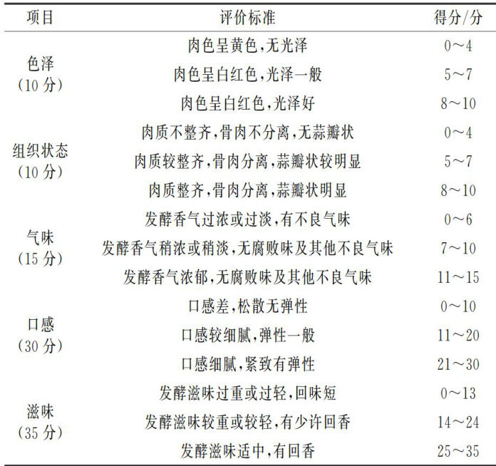 摘要:为进一步提高筒鲜鱼的品质,将从自然发酵筒鲜鱼中分离筛选得到的10株酵母菌作为发酵剂用于筒鲜鱼发酵。以未接种发酵剂的筒鲜鱼为对照组,通过测定发酵结束后水分含量、pH值、蛋白质含量、脂肪含量和感官评分探究酵母菌对筒鲜鱼发酵品质的影响,结合挥发性风味物质分析筛选出适合发酵筒鲜鱼的菌株。结果表明,接种WY-1和WY-3这两株酵母菌发酵的筒鲜鱼鱼肉色泽明亮,硬度较大,弹性适中,口感上更有嚼劲,与其他组相比,pH值、水分含量、蛋白质含量和脂肪含量更低,在挥发性风味物质方面,WY-3发酵组的醇类和酯类物质占比比WY-1发酵组更高,发酵香气更加浓郁,风味协调性更好,感官评分最高。WY-3菌株有利于改善筒鲜鱼的质地和风味,从而提高筒鲜鱼的整体品质,为接种发酵筒鲜鱼提供了理论依据。