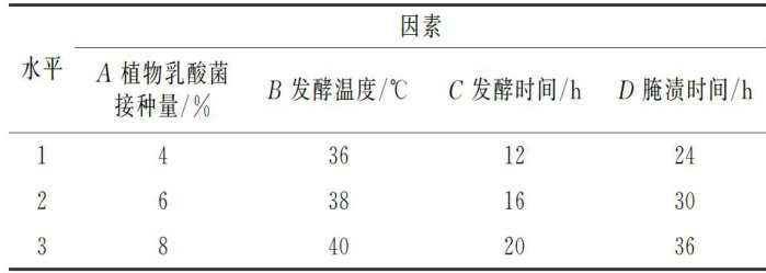 摘要:糠渍黄瓜是一种传统的发酵腌菜,该研究采用乳酸菌接种发酵的方法腌渍糠渍黄瓜,通过正交试验对加工工艺进行优化,并对比了接种发酵糠渍黄瓜和自然发酵糠渍黄瓜的 pH 值、总酸含量、亚硝酸盐含量和γ-氨基丁酸含量。结果表明,接种发酵糠渍黄瓜的最佳加工工艺参数为植物乳杆菌接种量6%、发酵温度38℃、米糠腌料发酵时间16h、腌渍时间30h。在此条件下,糠渍黄瓜的感官评分为93分。与自然发酵相比,接种植物乳杆菌LP-2发酵可缩短糠渍黄瓜的腌渍时间,且显著降低产品中的亚硝酸盐含量,并能提高产品中GABA含量。以上研究结果为糠渍黄瓜工艺的改良提供了理论基础。