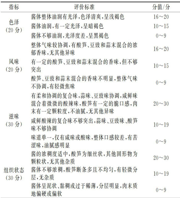 摘要:酸笋是中国南方地区人民喜欢的一种食物。文章以酸笋、猪肉末、豆豉、酱油、酸辣椒等为原料,通过单因素试验和正交试验结合感官评价法,优化酸笋豆豉肉末酱的最佳工艺:以加入的酸笋和肉末的总量500g为固定量,肥肉与瘦肉的比例为4:6,酸笋与肉末的比例为6:4,豆豉、蒜末、生抽和蚝油的添加量分别为50,120,20,50g,炒制油温为160℃。此条件下制作的酸笋豆豉肉末酱色泽光亮、香气浓郁、咸鲜可口、酸辣适宜,是一款营养丰富、口感佳的调味酱,适合搭配多种菜肴和烹饪加工使用。