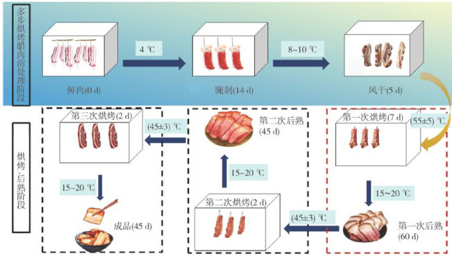 摘要:目前多步烘烤腊肉与贵州地区传统腊肉的风味与品质差异尚未见报道。因此,该研究以贵阳(CGL)、凯里(CKL)、遵义(CZL)3个地区的腊肉和多步烘烤腊肉(TRL)为研究对象测定理化指标,同时进行感官评价、电子舌分析,并利用HS-SPME-GC-MS技术对其进行挥发性风味物质鉴定。结果表明,TRL在色泽、组织结构、香味、口味、水分含量、水分活度方面显著高于其他3组,且过氧化值、硫代巴比妥酸值和酸价最高(未超过国家限定标准),而适度脂质氧化会促进风味的形成。电子舌结果显示,TRL在鲜味和丰富度方面高于其他3个产品。采用线性判别分析,在 4 组腊肉样品中共得到 21 种差异挥发性风味物质,大多数风味物质如壬醛、乙基环戊烯醇酮、甲基环戊烯醇酮、正己酸乙酯等在TRL中含量最高。综上,多步烘烤腊肉在感官品质、理化性质、风味等方面优于贵州地区传统工艺腊肉。该研究为多步烘烤腊肉产品的工业化生产和品质提升提供了一定的参考。