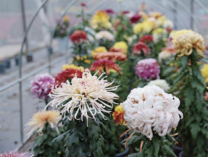 北海公园花房中,数朵菊花竞相开放。随时准备着与游客见面。 菊花是北京市的市花,关于菊花最早的文字记载始见于西周《礼记·月令篇》:“季秋之月,鞠有黄华。”明清两代,菊花的栽培更是有了长足发展。1925 年,北京市北海公园开放,首任顾问园艺师李超然在九龙壁西侧,开辟花圃种菊,规模不下千盆。 如今,北海公园已成为北方品种菊种植资源基地,担负着中国传统菊花品种保育任务,而北海公园“标本菊传统养殖技法”