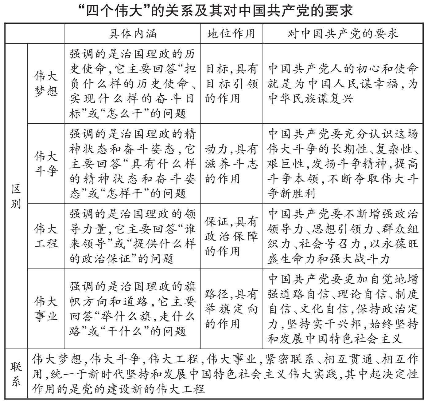 概念明晰 1. 新时代 (1)从历史脉络看:这个新时代,是承前启后、继往开来、在新的历史条件下继续夺取中国特色社会主义伟大胜利的时代。 (2)从奋斗目标看:这个新时代,是决胜全面建成小康社会、进而全面建设社会主义现代化强国的时代,是全国各族人民团结奋斗、不断创造美好生活、逐步实现全体人民共同富裕的时代,是全体中华儿女勠力同心、奋力实现中华民族伟大复兴中国梦的时代。 (3)从国际地位看:这个