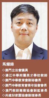 馬耀鋒 ◇澳門立法會議員 ◇濠江中學附屬英才學校教師 ◇澳門中華教育會副秘書長 ◇澳門中華教育會青年協會會長 ◇澳門教師專業協會副監事長 ◇共建好家園協會副理事長 在當今商業格局中,IP(知識產權)授權被國際視作“21世紀最有前途的商業經營模式之一”。對於澳門而言,大力發展IP經濟領域,無疑將對推動本地旅遊業產品和服務的多元化,以及提升城市文化軟實力起到至關重要的促進作用。