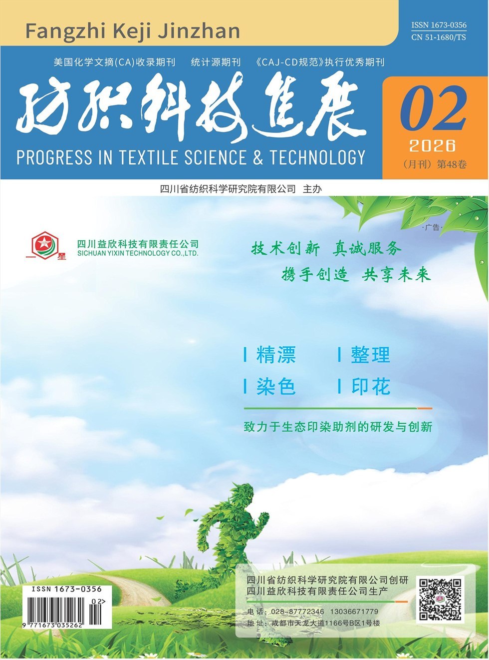 《纺织科技进展》是由四川省纺织科技情报中心站、四川省纺织工程学会主办的全国性综合类纺织科技期刊,国内外公开发行(国际标准刊号:ISSN 1673-0356,国内统一刊号:CN 51-1680/TS),为《中国学术期刊综合评价数据库》来源期刊和《CAJ-CD规范》执行优秀期刊。本刊已被美国化学文摘(CA)、《中国期刊全文数据库》等广泛收录,并全文入编“中国期刊网”和“万方数据—数字化期刊群”。自2015年11月起,《纺织科技进展》由双月刊改为月刊,大16开,64页,全方位报道纺织业、服装业、化学纤维制造业、纺织印染助剂行业和纺织专用设备制造业的重大学术研究成果和新进展、新技术、新工艺、新设计、新产品、新装备,以及纺织管理和教学的新思路、新方法。突出创新性、交叉性、系统性;注重实用性、知识性和可读性。