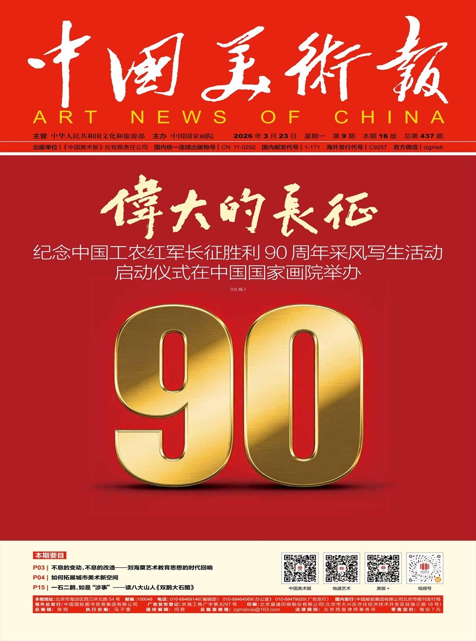 《中国美术报》成立于2015年12月26日,是文化和旅游部主管、中国国家画院主办的国家级美术专业媒体。2015年1月,由国家新闻出版广电总局批准创办,2016年1月正式出版。报纸的国内统一连续出版物号为CN11--0292,国内邮发代号为1-171,海外发行代号为C9257,篇幅为4开20版,彩色胶印周报,逢周一出版。
