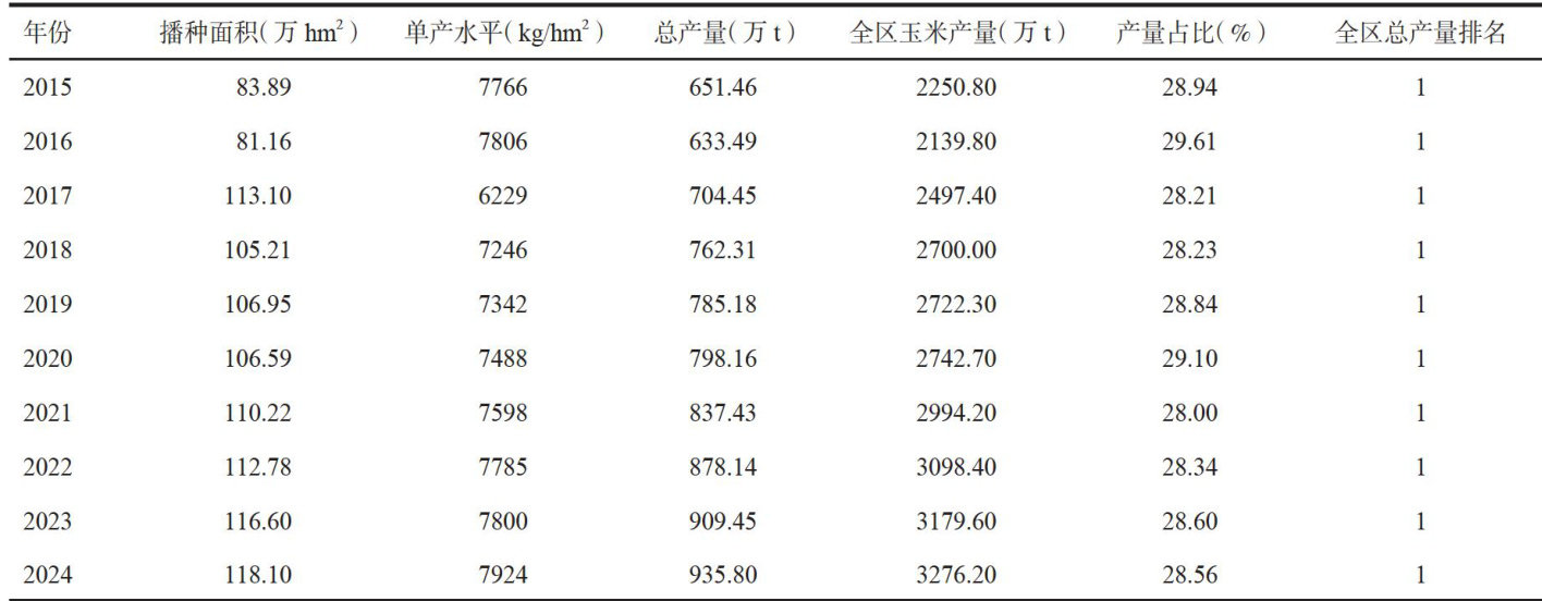 摘要:为适应内蒙古自治区特殊气候条件,满足区域粮食生产与饲料供给双重需求,选育高产、稳产、优质且具有广泛适应性的粮饲兼用玉米品种,以M565为母本、L208为父本进行杂交组配,育成玉米品种蒙龙213。该品种综合农艺性状优良,产量表现突出且稳产性好,品质达标,兼具粮食生产与饲料利用价值,于2022年通过内蒙古自治区农作物品种审定委员会审定。介绍了蒙龙213的选育过程、特征特性、栽培技术及制种技术,旨在为该品种的市场推广、区域适配种植及规模化应用提供理论与实践参考,推动其在内蒙古及相似生态区域的广泛应用与产业发展。