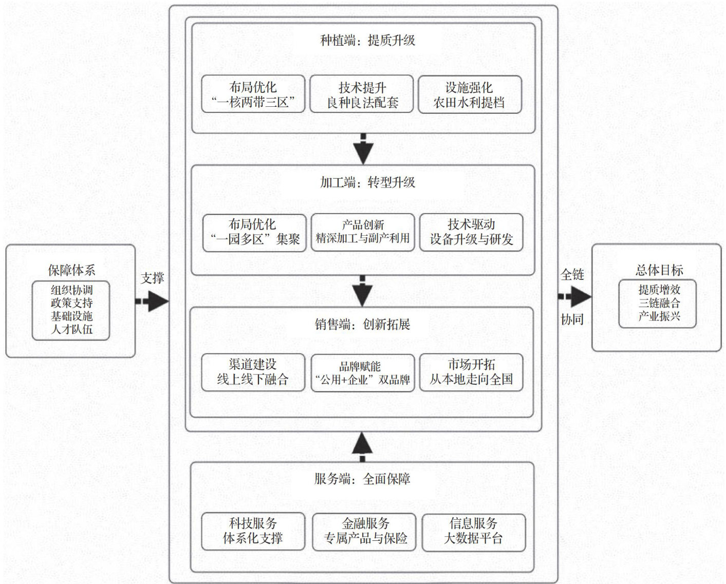 摘要:基于济南市谷子产业发展现状,运用全产业链视角,系统分析了种植、加工、销售、服务4个环节的发展现状和存在问题。研究表明,通过构建"四端协同、三链融合”的发展模式,能够有效解决产业发展的瓶颈问题。通过创新性地提出涵盖全产业链各环节的具体实施路径,包括种植端的标准化生产体系构建、加工端的精深加工升级、销售端的品牌营销创新、服务端的全要素保障等,为区域特色农业发展提供理论依据和实践参考。