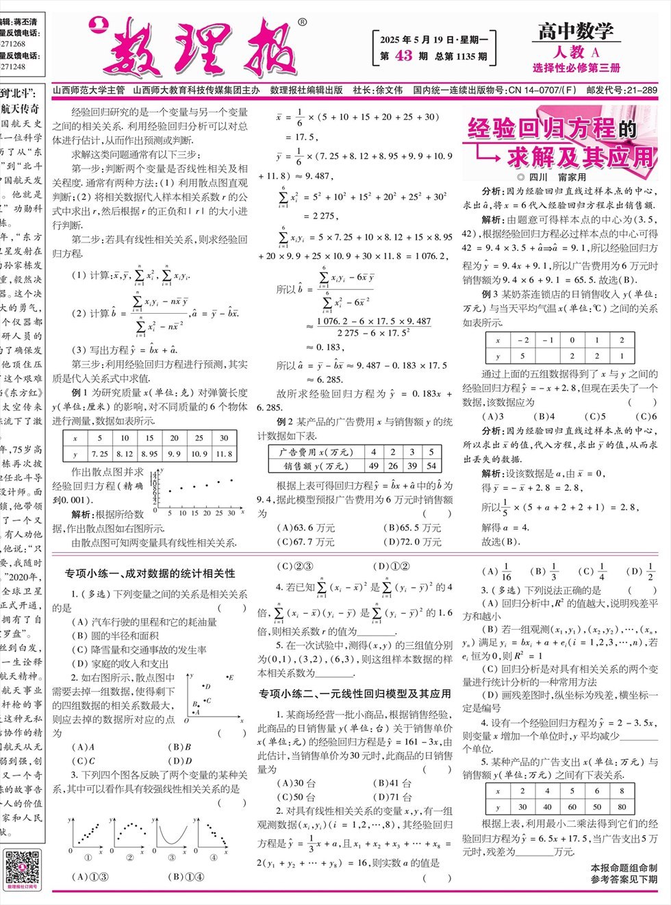 《数理报》是由山西省教育厅主管,山西师范大学主办,面向全国发行的中小学生理科教学辅导类报纸