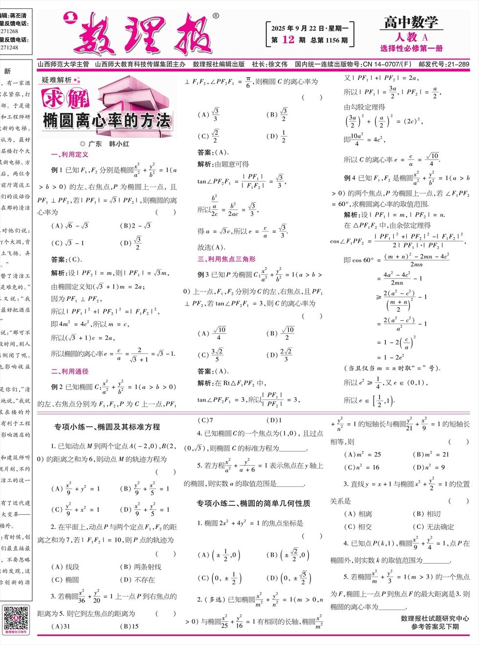 数理报·高二数学人教A版