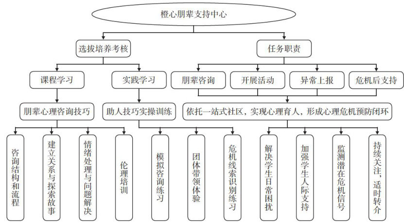 当前,大学生心理危机事件频发,其成因涉及人际压力、就业不确定性及心理健康问题检出率上升等多重因素。当前高校心理危机干预体系存在预警敏感性不足、专业资源短缺、干预模式单一及缺乏闭环管理等问题。为此,本文提出基于朋辈支持的心理危机预警与干预模型:通过标准化选拔和培训组建朋辈互助队伍(含心理委员、宿舍长等),构建“金字塔型”支持网络;依托朋辈咨询室提供“夜间心理急诊”服务;开展三维联动支持活动(工作坊、