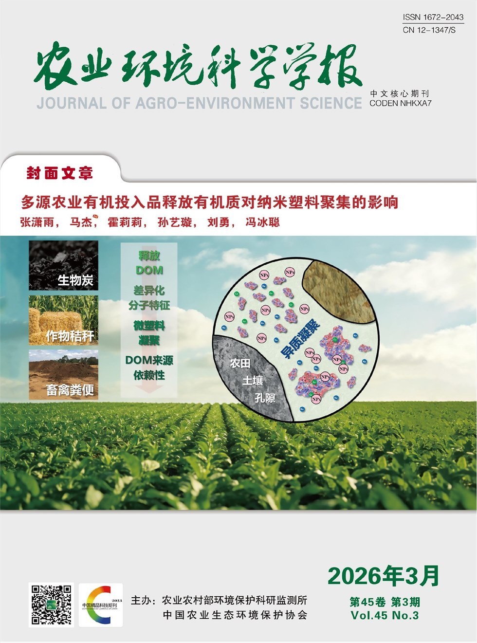 《农业环境科学学报》:是农业生态环境领域的全国性学术类科技期刊,由农业农村部环境保护科研监测所和中国农业生态环境保护协会联合主办。主要刊登农业生态环境领域具有创新性的研究成果,包括新理论、新技术和新方法。文章类型包括专论与综述、研究报告、研究快报、学术争鸣等。