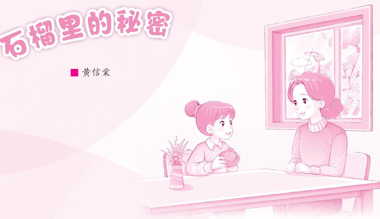 今天,我想和大家分享一个我最近发现的秘密,这个秘密就藏在一个我最喜欢的水果一石榴里。 前几天,妈妈买回来一个大石榴。它圆圆的、红红的,像一个小灯笼,又像一个装满了礼物的新年福袋。我迫不及待地想打开它,看看里面到底藏着什么。可是石榴皮摸着柔软,却很难弄开。妈妈笑着说:“石榴皮虽然不坚硬,但是它保护着一个秘密,你要找到方法才能打开它。”接着,她用小刀在石榴顶上划了一圈,然后轻轻一掰,石榴就被掰开了。