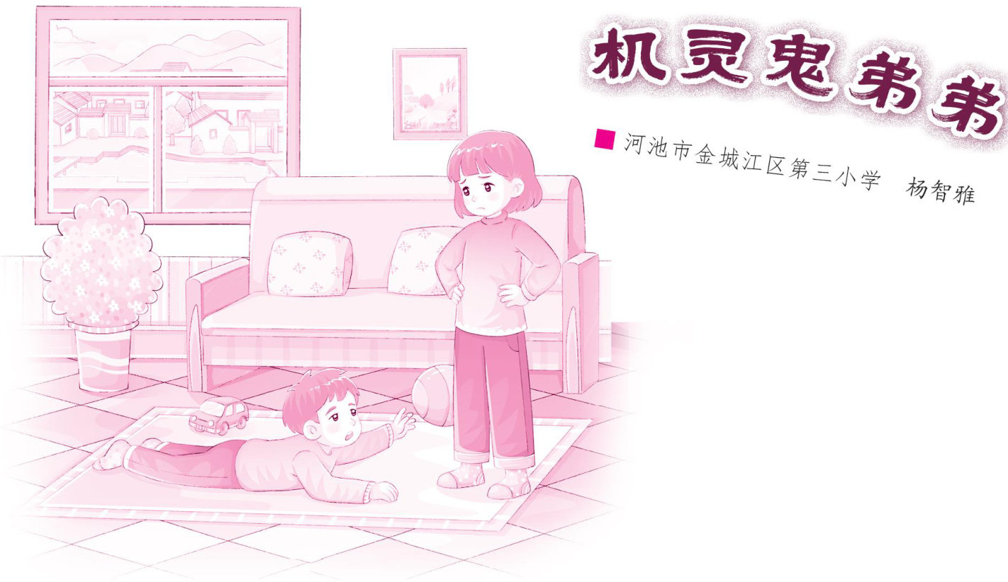 我的弟弟是一个名副其实的机灵鬼。 弟弟那圆圆的脑袋里,仿佛总藏着许多让人猜不透的新花样;那双黑宝石般的眼睛骨碌碌一转,就能进发出无数奇思妙想;而那张灵巧的小嘴,时常变换语气,说出令人意想不到的话来。 一次,弟弟摔倒了。我看他摔得不重,就没去扶。于是,弟弟开始展露他的表演天赋,装出一副虚弱的样子,还拖长了尾音喊道:“姐姐,我要死了—”见我没有搭理他,他更“虚弱”了,用半死不活的声音哼唧:“姐姐—