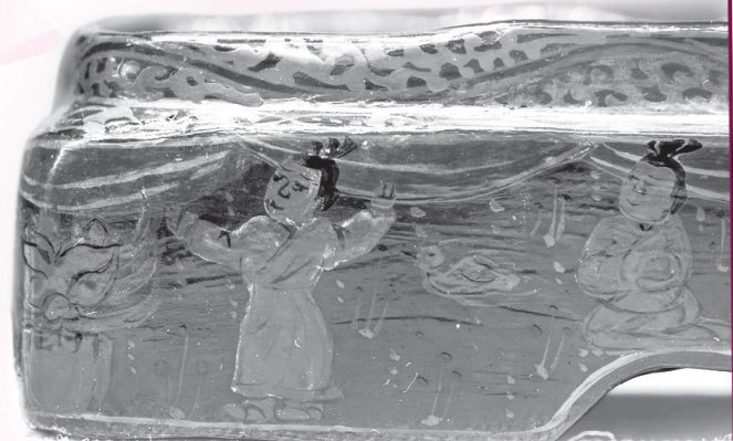 年代:三国 尺寸:长25.4厘米,宽16.3厘米,高4.9厘米 1984年6月,安徽省马鞍山市一个小土岗上,意外发现了一座砖室墓,后经考古人员发掘研究,其主人为三国时期东吴左大司马、右军师朱然。朱然家族墓葬群中出土漆器约80件。这批漆器基本上都是生活用品,如案、盘、盒、勺、隔、壶、羽觞、凭几等。这些物品有的已经离我们的生活远去,比如凭几。魏晋南北朝时期,贵族都是席地而坐,坐累了就会倚靠在凭