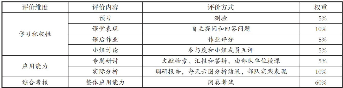 [摘要]“卫星气象学”是利用气象卫星探测资料进行分析应用与研究的一门课程,在军事教育人才培养体系中,具有重要的地位。目前,“卫星气象学”课程存在教学目标设计不完善、教学内容不够全面、教学策略相对老套、教学评价体系不够合理等不足。引入成果导向教育(OBE)理念,结合战教耦合策略,对该课程进行改进和实践,重塑了教学目标,设计了新的教学内容和教学策略,并构建了基于OBE理念的教学评价体系,对改进效果进行科学评价与总结,以提升新时代战场环境保障人才的培养水平。