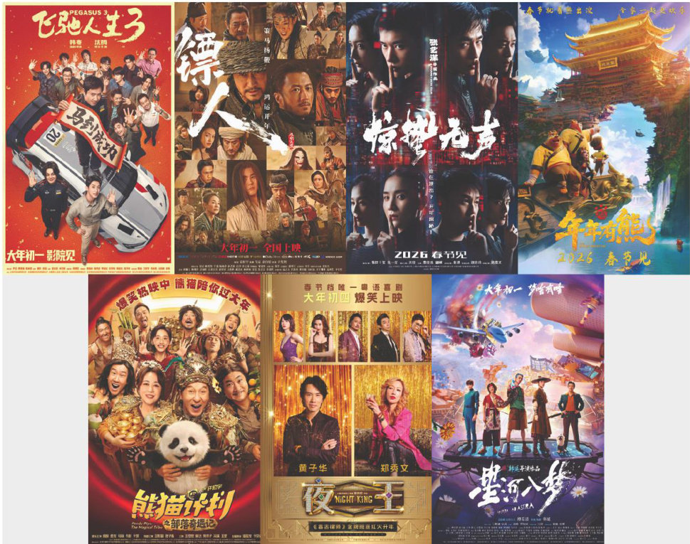 2月9日,由国家电影局主办,电影频道节目中心、中央广播电视总台新闻新媒体中心、中国电影博物馆承办的2026春节档片单发布活动暨中国电影新春嘉年华在京举行。六部2026春节档上映新片的主创首次全阵容集结,全明星合力推举档期声量,团结一心为全年度电影市场剪彩,向春节档观众致以最大诚意。 《惊蛰无声》《镖人:风起大漠》《飞驰人生3》《星河入梦》《熊猫计划之部落奇遇记》《熊出没·年年有熊》六部影
