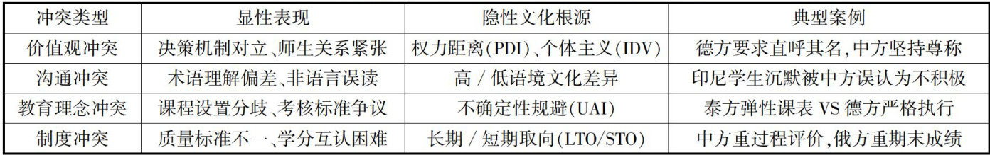 摘要:该研究聚焦“一带一路”背景下高职院校国际合作办学中的跨文化冲突问题,基于文献分析、案例研究和实地调查等混合研究方法,系统探讨了跨文化冲突的表现形态、生成机理及影响路径。研究发现,文化认知差异(Hofstede文化维度理论)、语言符号误读、教育理念分歧和制度习惯冲突,构成了跨文化冲突的主要诱因。针对多维冲突特征,创新性提出“认知—制度—技术"三维治理框架,包含跨文化能力建设体系、协同管理机制和智能辅助系统。该研究旨在突破现有局限,为新时代职业教育国际化发展提供了理论参照和实践范式,助力“一带一路"教育共同体建设。