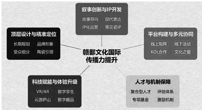 摘要:在全球文明对话日益深化的时代背景下,推动中华文化走出去是促进文明互鉴、贡献中国智慧的重要路径。该文以赣鄱文化为研究对象,旨在系统阐释其“瓷之源、道之宗、绿之韵、文之盛、红之魂”五大符号群的核心价值体系,运用跨文化传播理论与符号学方法,挖掘其生态智慧、哲学思想及人文精神,探寻其与人类共同价值、现代性话语的深层契合点。该研究重点从叙事策略现代化创新、传播渠道多元化整合、受众细分下的精准传播三维度,构建兼具理论支撑与实践操作性的赣鄱文化国际传播力提升路径,以期为增强中国地域文化全球影响力提供个案参考与策略启示。