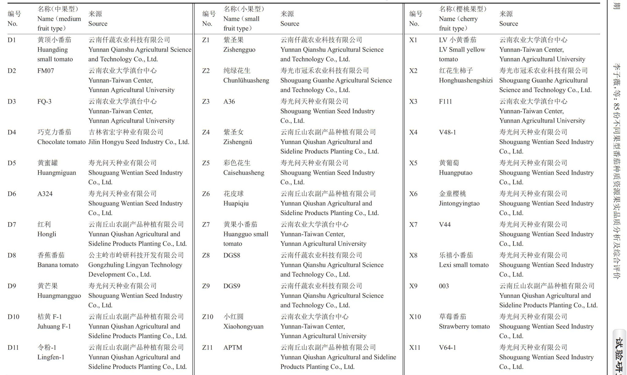 摘要:以不同果型的85份番茄种质资源为试验材料,对其果实的外观品质、风味品质及营养品质进行系统研究,采用相关性分析、主成分分析和隶属函数法等多种统计方法对果实品质进行综合评价。结果表明,在外观品质方面,中果型番茄果形变异丰富,小果型和樱桃果型以长圆形、圆形和高圆形为主;成熟果色以红色果实占据主导地位。在风味品质方面,不同果型番茄的柠檬酸和苹果酸含量的变异系数较大,均超过 40% 。在营养品质方面,樱桃果型番茄的维生素C含量、叶酸含量及4个营养品质指标(总糖、总酸、可溶性固形物和柠檬酸含量)的平均值均高于中、小果型。相关性分析结果表明,果实外观品质整体与营养品质呈显著负相关;风味品质除总酸含量与糖酸比呈极显著负相关外,其余性状都存在一定的正相关性;营养品质性状中维生素C含量与番茄红素含量的相关性不显著。通过主成分分析法与隶属函数法相结合进行综合评价,筛选出品质级别居上 (X>0.6) 的材料13份,隶属函数值得分表明,樱桃果型番茄品质优于小果型番茄,而小果型番茄品质优于中果型番茄。综上,番茄果实中柠檬酸和苹果酸含量的变异系数较大,在品种选育过程中具有较大的选择空间;樱桃果型番茄果实品质综合评价优于中、小果型番茄。本研究结果可为番茄果实品质评价及品种改良提供理论依据。