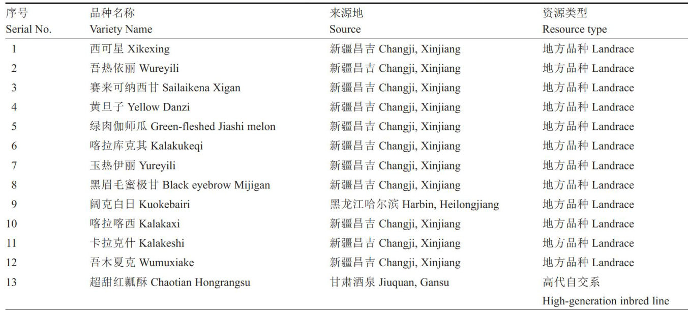 摘要:为了筛选优异的厚皮甜瓜资源,为新品种的选育提供材料,推动南疆甜瓜产业的可持续发展,本研究以南疆栽培的13份厚皮甜瓜资源为试验材料,进行农艺性状比较试验,对其物候期、形态特征、产量和果实品质等农艺性状进行调查,分析不同资源之间的差异性,并对其18个数量性状进行综合评价。结果表明,1号(西可星)全生育期最短,约110d,可作为早熟品种的育种材料;8号(黑眉毛蜜极甘)和9号(阔克白日)全生育期最长,在133\~134d,可作为中晚熟品种的育种材料。12号(吾木夏克)综合排名得分最高,均值0.72,可作为选育高产稳产的厚皮甜瓜新品种的亲本材料。6号(喀拉库克其)综合排名第二,均值为0.64,可作为选育大果型高产厚皮甜瓜新品种的亲本材料。