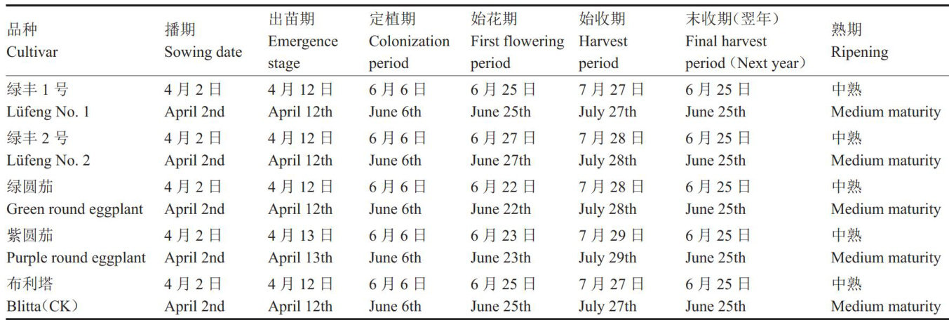 摘要:为了优化新疆北部地区设施茄子的品种结构,筛选出适合当地栽培的优质丰产、抗病性强的茄子品种,对5个茄子品种的物候期、生育期、植物学性状、产量及果实的可溶性糖含量、可溶性蛋白含量、维生素C含量和维生素P含量、总酚相对含量、类黄酮相对含量、花青素相对含量等营养成分进行了测定,用隶属函数法对结果进行了综合比较。结果表明,绿丰1号的产量与品质综合表现最优, 667m2 产量达 9690.56kg ,较对照增产 7.98% ,其可溶性糖含量 Π(μ) ,后同) 33.44mg?g-1) 、果皮维生素P含量 (1.23mg?g-1) 等指标显著领先,隶属函数值0.6968,位居首位。紫圆茄单果质量最高 (377.12g) 且果皮总酚相对含量、花青素相对含量等抗氧化成分在5个茄子品种中最高。绿圆茄可溶性蛋白含量 (3.94mg?g-1) 与果皮维生素C含量( ?13.61mg?100g-1) 优势明显。相关性分析揭示株高与果长呈极显著正相关,可溶性糖含量与可溶性蛋白含量、果皮维生素C含量呈极显著或显著正相关。结果表明,绿丰1号兼具丰产性与营养优势,适宜作为北疆设施主推品种;紫圆茄可作为功能性品种补充市场需求,绿圆茄的高蛋白特性具有开发潜力。