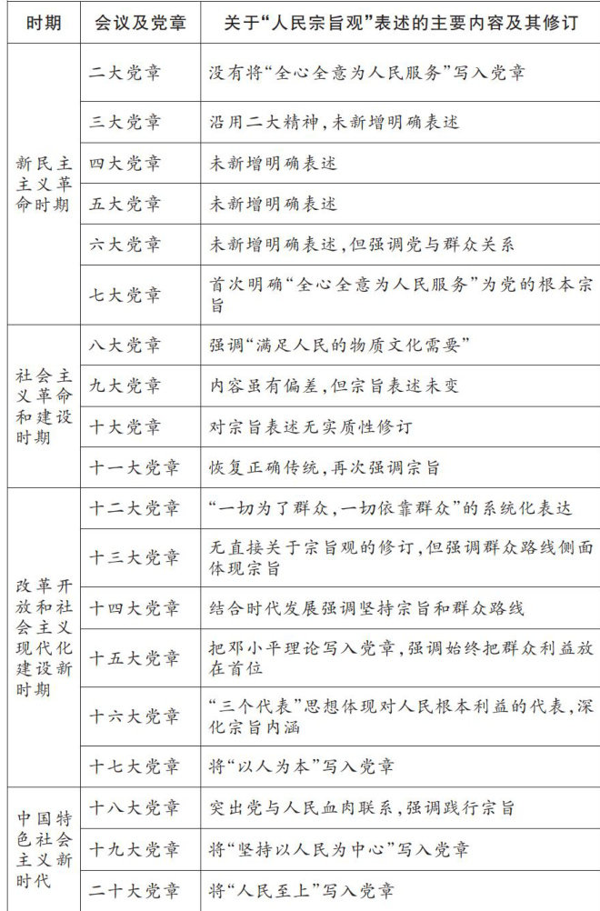 [摘要]人民宗旨观是中国共产党的根本政治立场与价值内核,是区别于其他一切政党的显著标识。研究中国共产党成立以来人民宗旨观在党章文本中的“变”与“常”,对于新时代坚持人民主体地位、推进党的建设新的伟大工程具有重要意义。通过对党章文本的系统性分析发现,自中国共产党成立以来,人民宗旨观的话语体系经历了由服务革命斗争的阶级话语,向巩固执政地位的服务话语,再到融入经济发展的民生话语,最终演化为贯穿国家治理的人民中心话语的阶段性变化,彰显出中国共产党坚持马克思主义群众观、坚持人民至上与坚持群众路线的一贯追求。