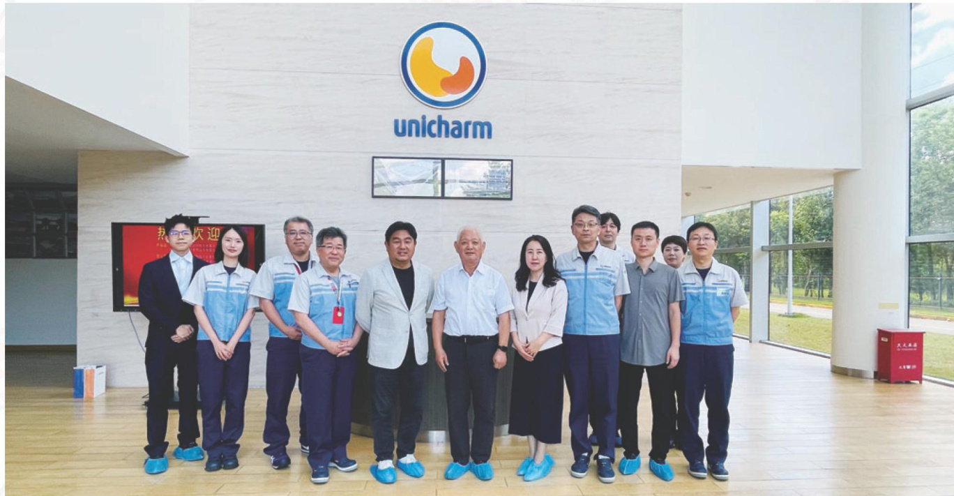 (本刊讯)2025年8月14日上午,中国造纸协会生活用纸专委会主任曹振雷博士、专委会副秘书长/中国制浆造纸研究院副总经理、生活用纸中心副主任等一行4人,前往尤妮佳生活用品(中国)有限公司(以下简称“尤妮佳”)进行走访交流。与尤妮佳董事长石井裕二、商品开发统括总部统括总经理柏木政浩、董事兼生产统括总部统括总经理大须贺敏、生产统括总部副总经理铃木保、FC商品开发总部总经理黑田贤一郎、生产统括总部品质管