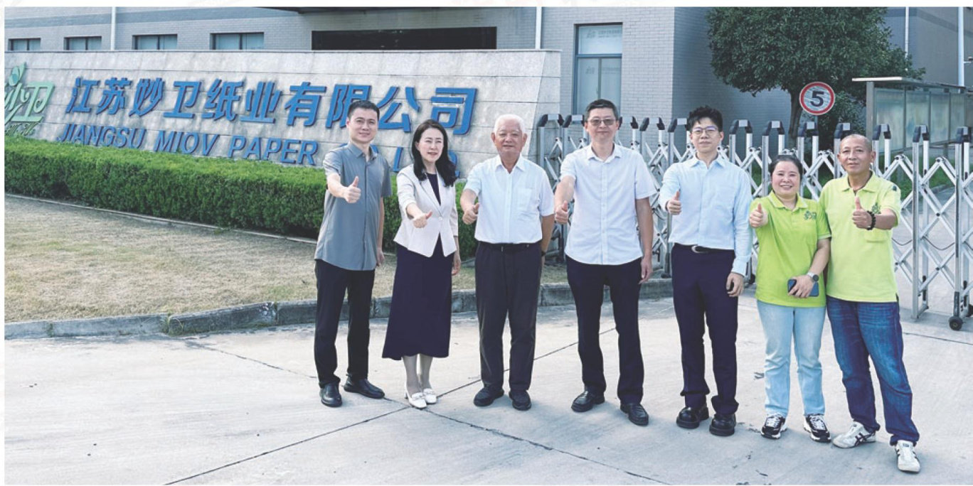 (本刊讯)2025年8月14日,中国造纸协会生活用纸专业委员会主任曹振雷博士、专委会副秘书长/中国制浆造纸研究院副总经理、生活用纸中心副主任等一行4人走访江苏妙卫纸业有限公司(下称“妙卫纸业”),与妙卫纸业公司总经理陆永东、副总经理张春芳、人事行政负责人郭保华进行座谈交流,并参观了生产车间。 品质为先,专精擦手纸,深耕日本市场 日本消费者注重环保,偏爱使用再生纤维或非木纤维生产的生活用纸。