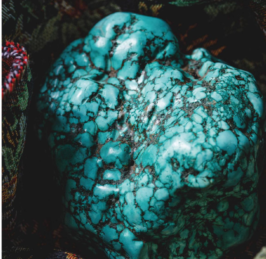 绿松石是一种不透明的蓝绿色矿物,在中国有悠久的开采加工历史,古人称其为“碧甸子”,英语、法语中则称其为“土耳其玉”。许多学者认为“土耳其玉”这一名称是误会的产物,因为土耳其不产绿松石,绿松石只是经土耳其转运至欧洲。 伊朗出产优质绿松石。在伊朗,绿松石不仅是一种装饰品,更是社会地位、权力乃至灵性的象征。从阿契美尼德王朝的绿松石王冠,到萨法维王朝恢宏的建筑表面嵌有绿松石的砖瓦,再到伊朗各地的传统首饰