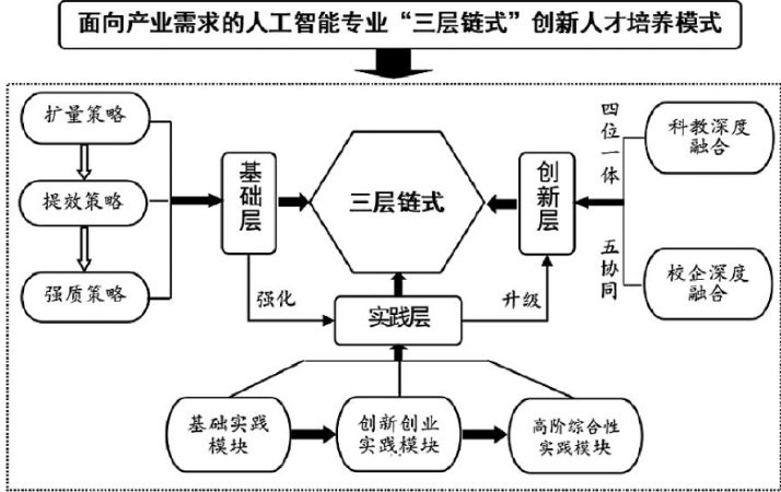 摘要:数理基础相对薄弱、实践动手能力不强及创新意识缺乏等问题严重影响着人工智能类专业人才培养与产业需求的紧密对接。针对上述几个问题,该文秉持产业需求导向探索以“基础层 + 实践层 + 创新层”为指向的“三层链式”人工智能专业创新人才培养模式,并结合对三个不同层次的培养目标和属性,给出具体的“三轮驱动”及“双融合”等实施策略。此外,以多主体协同参与为基础,构建多维增值评价方式助力人工智能专业创新人才培养效果的提升。