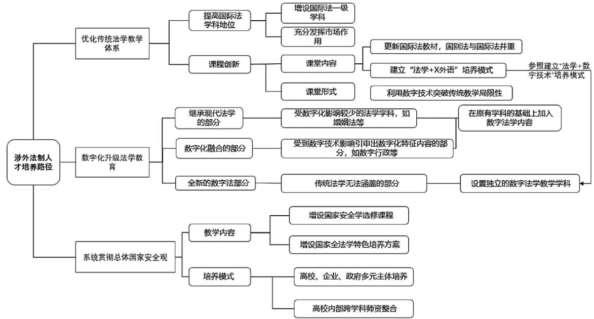 摘要:我国正在积极参与全球数字治理,尤其是数字丝绸之路法律秩序构建、营商环境的数字化升级,均对涉外法治人才的培养工作提出新要求。高质量的涉外法治人才不仅应具有扎实的法律专业素养,还应熟悉新兴数字技术及数字法治,并具备在涉外活动中维护国家安全的能力。对此,我国涉外法治人才的培养路径具体如下。一方面,系统优化与完善法学教学体系,强调科技与法治的深度融合,主要包括更新课程内容,加入人工智能、大数据等新兴科技在法律实践中的应用;构建跨学科的教学模式,促进法学与计算机科学、信息技术等领域的交叉,以培养具备综合素质的法律人才。另一方面,还应重视将国家安全、网络安全和数据跨境流动等内容纳入法学专业课程,增强学生的安全意识和法治思维,从而为维护国家安全和促进国际法治贡献力量。