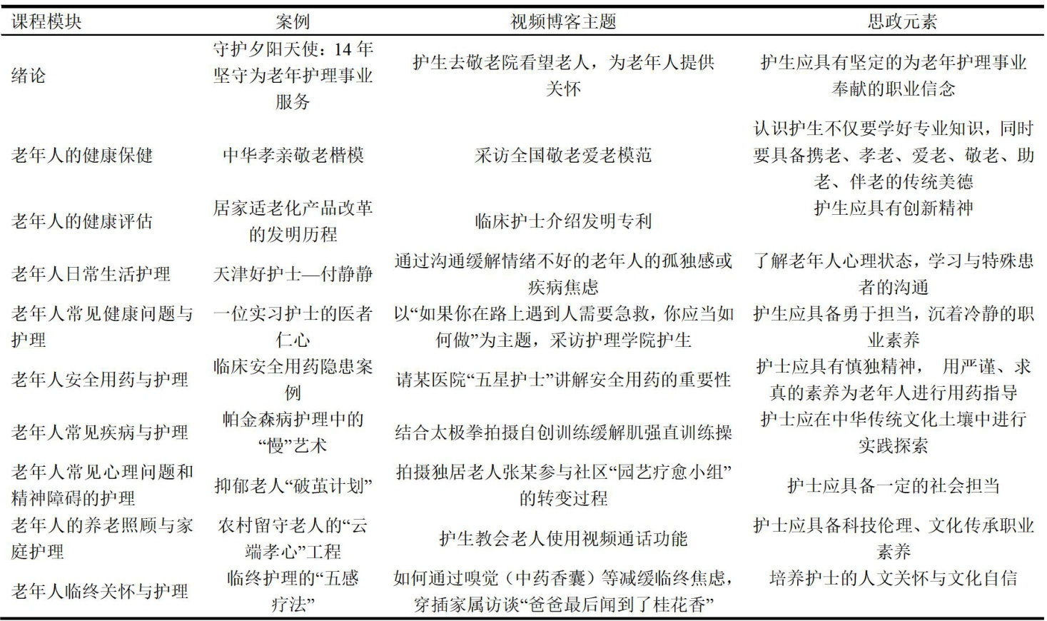 摘要:探讨案例联合视频博客教学法在老年护理学课程思政教育中的实践效果,为老年护理人才培养提供教学参考。选取专本协同育人2022级护理本科护生96人,按班级分为对照组与观察组各48人。对照组采用常规教学模式,观察组实施案例联合视频博客教学法,将思政元素融入教学全过程。课程结束后,通过问卷调查了解观察组护生教学认可度,比较两组护生关怀能力、服务老年人意愿、专业认同感及期末考试成绩。观察组护生对教学模式总体满意度达 97.9% ,多数认为该模式能促进素质提升、强化职业精神;其关怀能力、服务老年人意愿、专业认同感及考试成绩均显著高于对照组( P<0.05 )。该教学法可有效融合课程思政与专业教学,提升护生职业素养、专业认同及学习成效,契合社会对老年护理人才的培养需求。